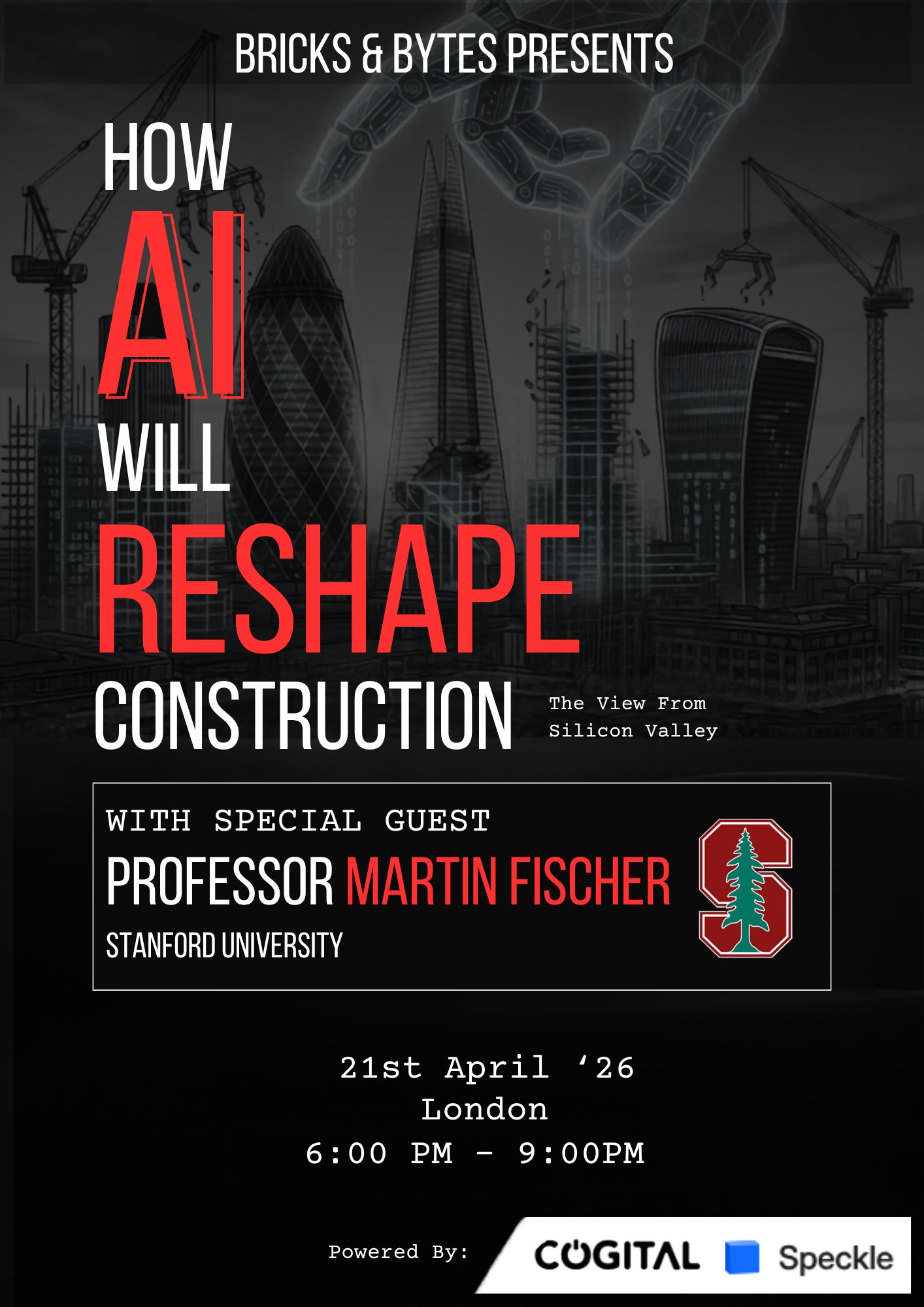 On April 21st 2026, Bricks & Bytes is bringing Professor Martin Fischer from Stanford University to London for a one-off evening with construction's senior leadership.
