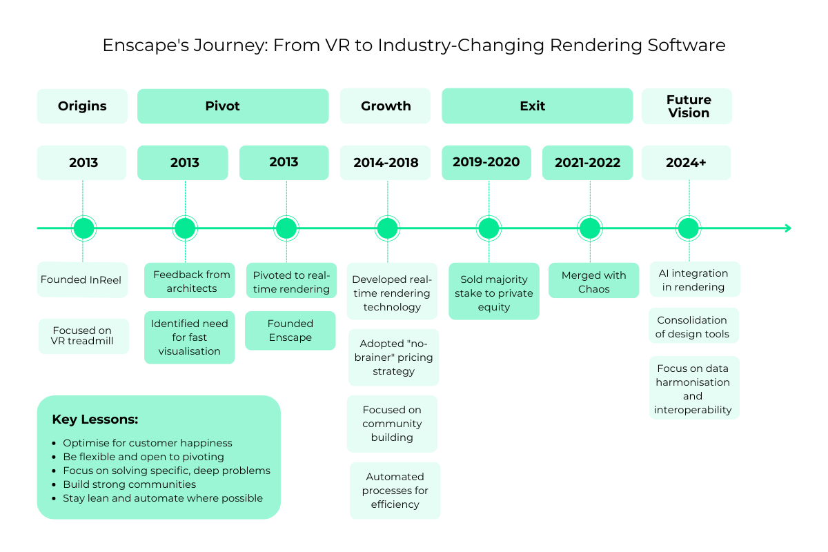 Perhaps most importantly, Enscape maintained a laser focus on customer happiness. They didn't optimize for financial metrics or acquisition potential. Instead, they concentrated on solving real problems for their users.
